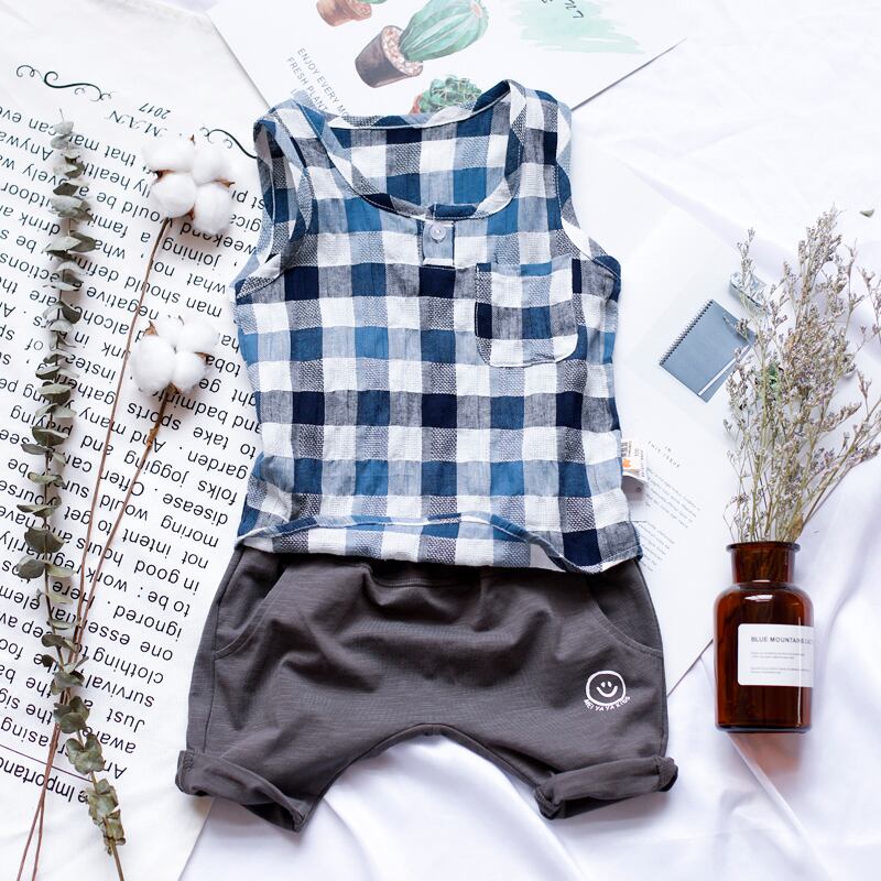 ◆新作◆ 2020年夏の新しい赤ちゃんの子のチェック柄の綿とリネンのベスト子供服の男の子のノースリーブTシャツの子供のスーツの潮 コットン サマー 夏物 オシャレ キッズ mi066511221