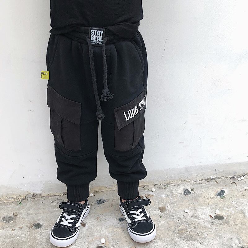 ◆新作◆ Mei Ya Ya 2020春の新しい男の子の黒のオーバーオールの潮ファンの子供は脚のカジュアルパンツのポケットを縮小します ブラック スプリング 春物 オシャレ キッズ mi069637088