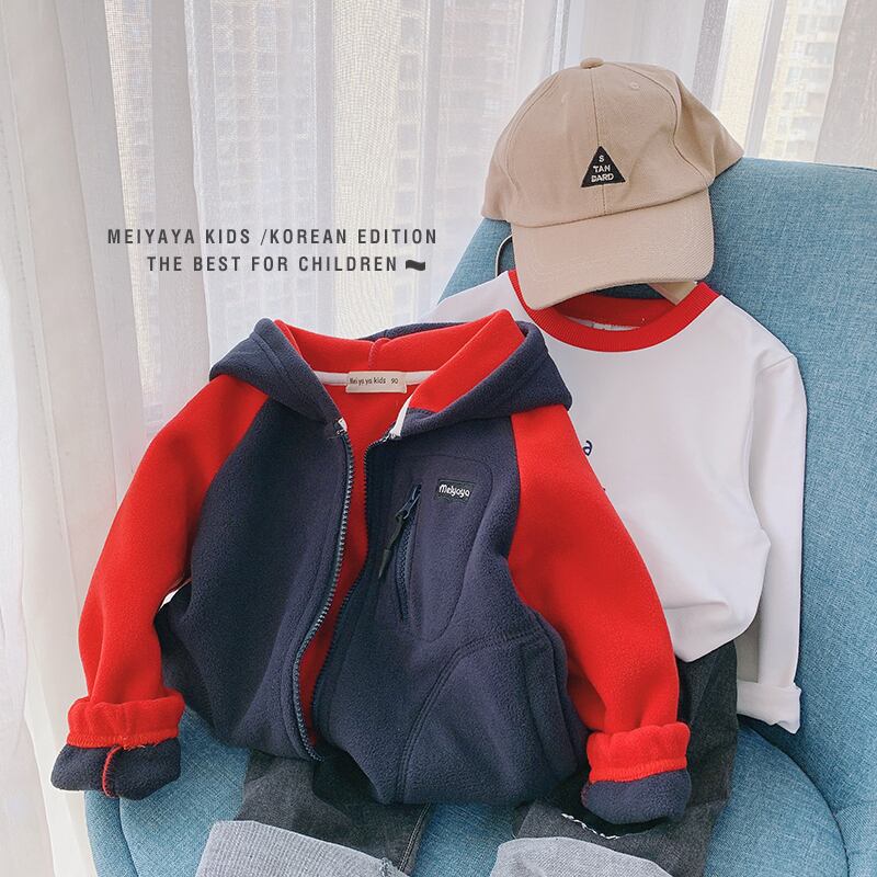◆新作◆ 子供のエインポーラーフリースジャケットボーイズと春と秋のフード付きスタンドアップ襟ジャケット中小の子供用防風服料金 スプリング 春物 オータム 秋物 オシャレ キッズ mi067092107