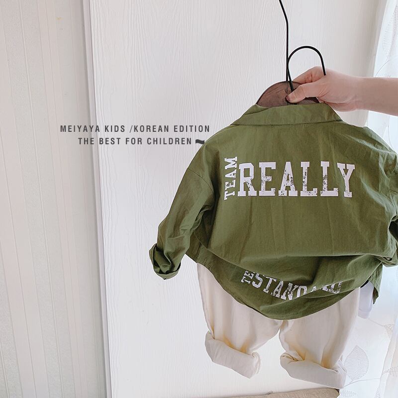 ◆新作◆ Mei Ya Ya 2020春の新しい男の子のエイン長袖シャツ子供用アーミーグリーン薄いコート潮ファン ロング スプリング 春物 オシャレ キッズ mi069722627