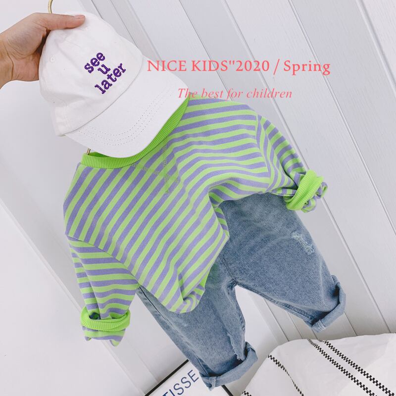 ◆新作◆ 小さな新鮮なカスタム生地子供用コットンストライプセーターバットスリーブ男の子と中年の子供用ボトムシャツ オシャレ キッズ mi064561172