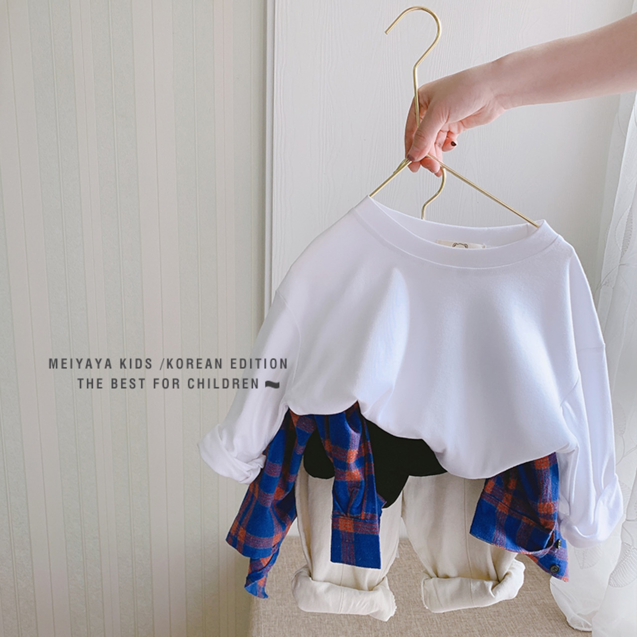 ◆新作◆ 柔らかな生地、子供服、男の子、そして真っ白な長袖Tシャツ幼稚園ボトムシャツ、ワンピーストップ ロング ホワイト ピュア オシャレ キッズ mi068311180