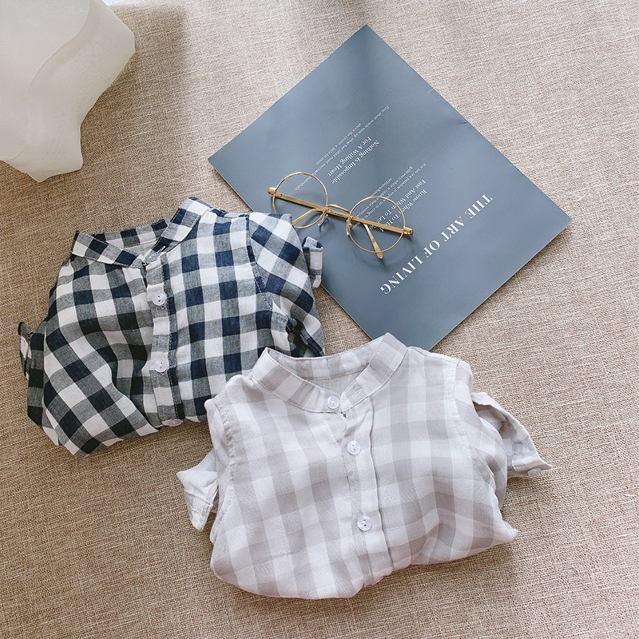 ◆新作◆ Meiya Yachun子供用チェック柄コットンガーゼシャツミドルアンドスモールボーイズソフトコットンスタンドカラーシャツ オシャレ キッズ mi068647051