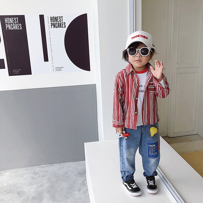 ◆新作◆ Meiyaya 2020春の新しい子供たちの赤青の縦縞の綿のシャツの男の子のシャツの潮 レッド ブルー コットン スプリング 春物 ストライプ オシャレ キッズ mi067023759