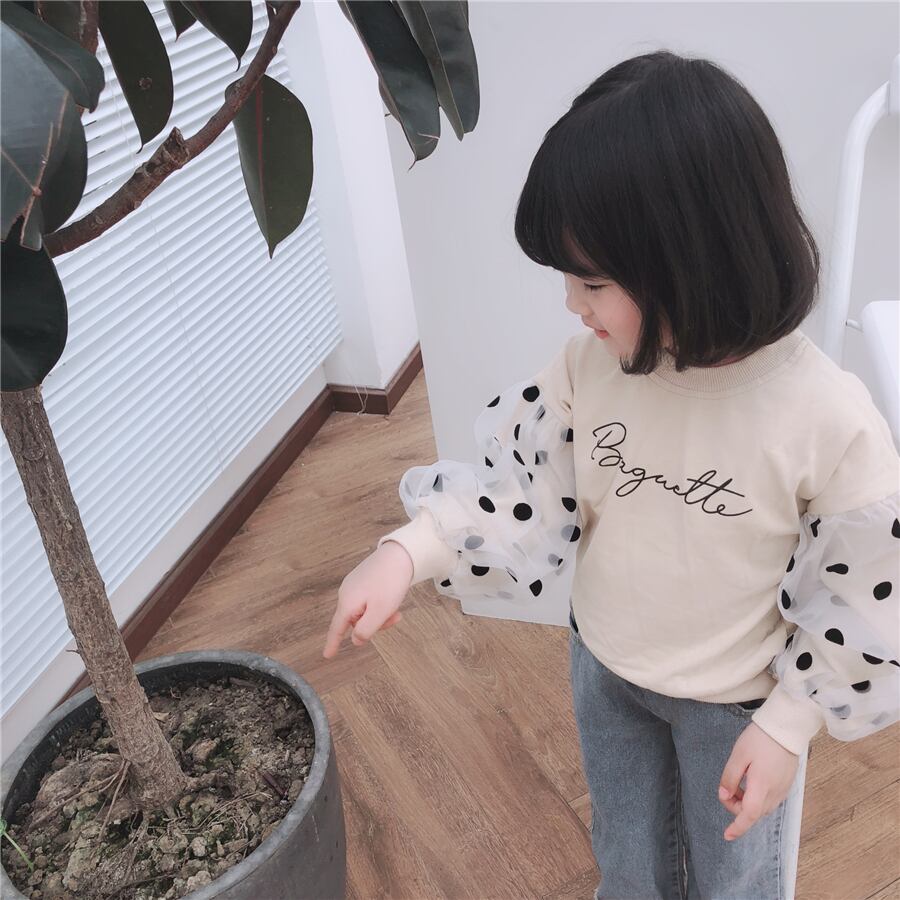 ◆新作◆ 20春と秋の新しい 'ボトムスシャツ子供メッシュ糸バブルスリーブ長袖Tシャツストレッチコットンセーター無地 ロング スプリング 春物 オータム 秋物 ソリッドカラー オシャレ キッズ mi068223844
