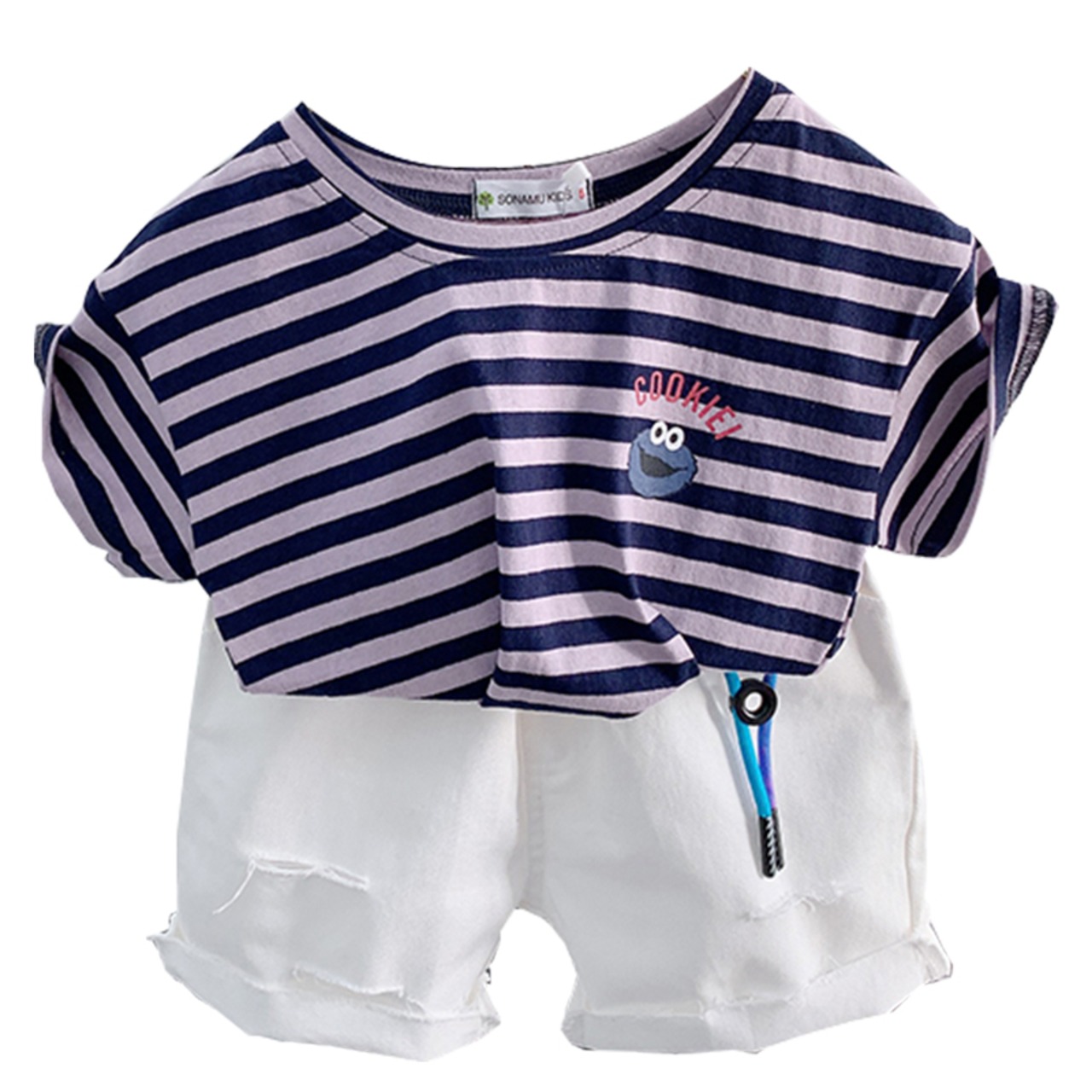 ◆新作◆ 全試合賞賛!子供の男の子の縞模様の半袖夏の綿の男の子のすべての試合の半袖エインTシャツ潮 コットン サマー 夏物 ストライプ オシャレ キッズ mi062764508