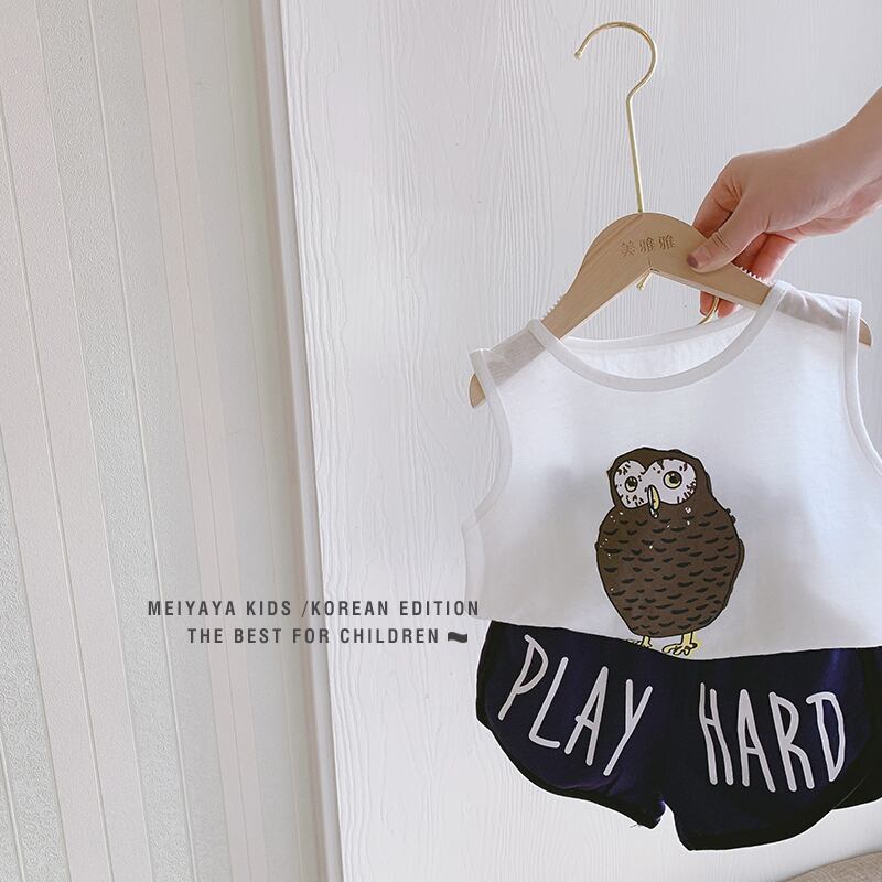 テンセルリネンコットン夏の子供の漫画のフクロウの赤ちゃんのベストTシャツ純綿の男の子とノースリーブの底入れシャツの潮 サマー 夏物 ピュア SNSで話題 KIDS男の子 KIDS女の子 韓国ファッション 男の子ママ 女の子ママ 海外キッズファッション 親子コーデ 今日の服 プチプラ mi064858477