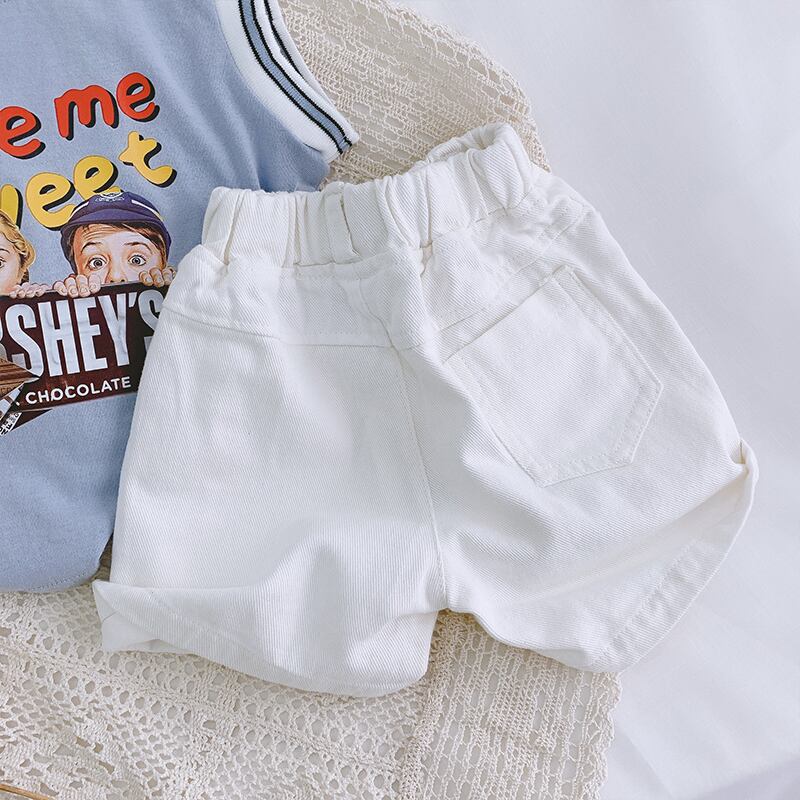 服の中に宝物を入れて、子供の流行の白いショートパンツの男の子と5ポイントパンツビーチパンツ薄い感じ ホワイト ショーツ ブルマー SNSで話題 KIDS男の子 KIDS女の子 韓国ファッション 男の子ママ 女の子ママ 海外キッズファッション 親子コーデ 今日の服 プチプラ mi063775810
