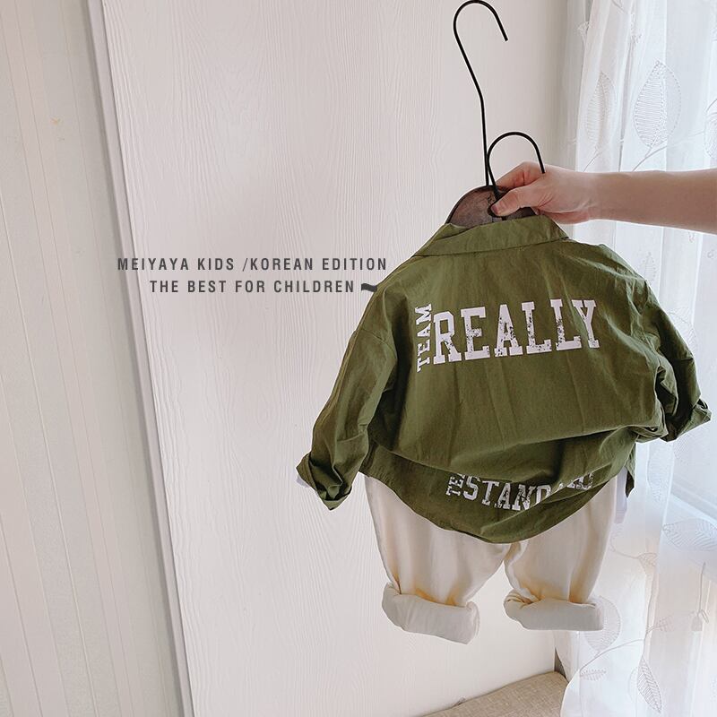 メイヤヤ2020秋新作男の子西洋風長袖シャツ子供アーミーグリーン薄手ジャケットトレンドファン ロング オータム 秋物 SNSで話題 KIDS男の子 KIDS女の子 韓国ファッション 男の子ママ 女の子ママ 海外キッズファッション 親子コーデ 今日の服 プチプラ mi064584516