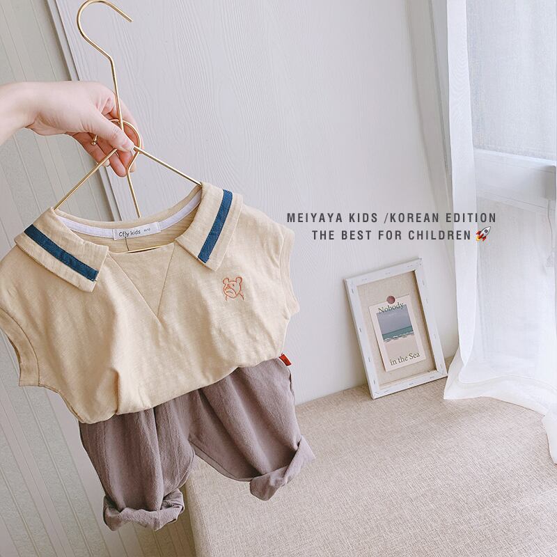 Meiya夏の新製品の男の子と海軍の襟の漫画の半袖シャツ子供スラブ綿半袖ラペルTシャツ コットン サマー 夏物 SNSで話題 KIDS男の子 KIDS女の子 韓国ファッション 男の子ママ 女の子ママ 海外キッズファッション 親子コーデ 今日の服 プチプラ mi060355855