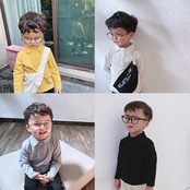 良い生地子供用ポロシャツ男の子黒と白の長袖Tシャツ2020年春子供用コットントップス ロング ホワイト ブラック スプリング 春物 SNSで話題 KIDS男の子 KIDS女の子 韓国ファッション 男の子ママ 女の子ママ 海外キッズファッション 親子コーデ 今日の服 プチプラ mi062108841