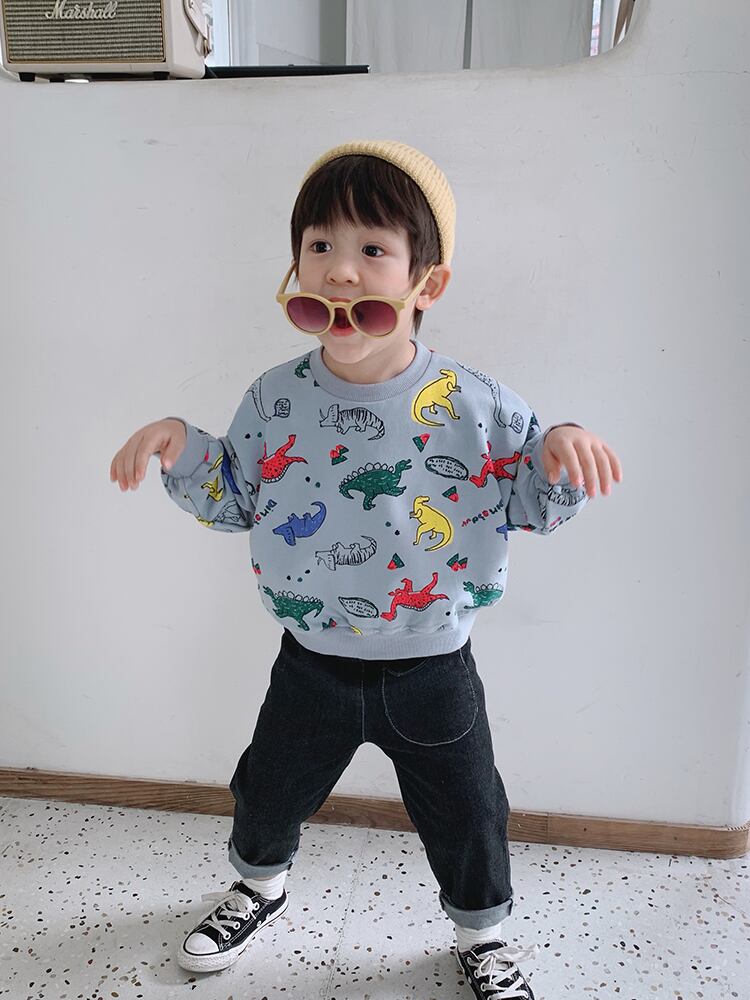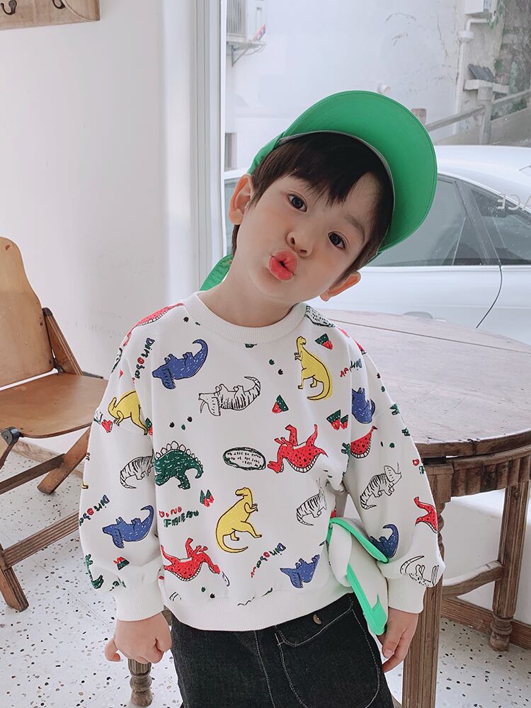 Meiya 2020秋の服新しいins男の子とフルプリントの漫画恐竜西洋風セーター子供Tシャツ オータム 秋物 SNSで話題 KIDS男の子 KIDS女の子 韓国ファッション 男の子ママ 女の子ママ 海外キッズファッション 親子コーデ 今日の服 プチプラ mi060159409