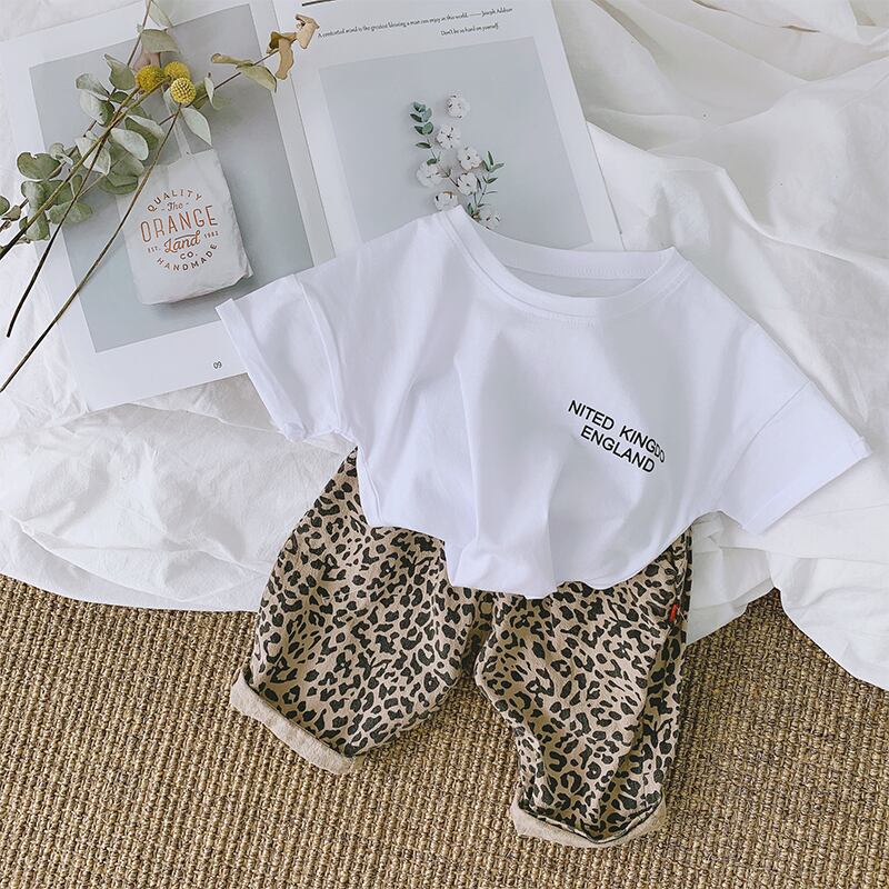 【セット】男の子ヒョウ柄セット2020夏半袖五分パンツツーピース薄手男の子 ショート ハーフスリーブ サマー 夏物 SNSで話題 KIDS男の子 KIDS女の子 韓国ファッション 男の子ママ 女の子ママ 海外キッズファッション 親子コーデ 今日の服 プチプラ mi066794000