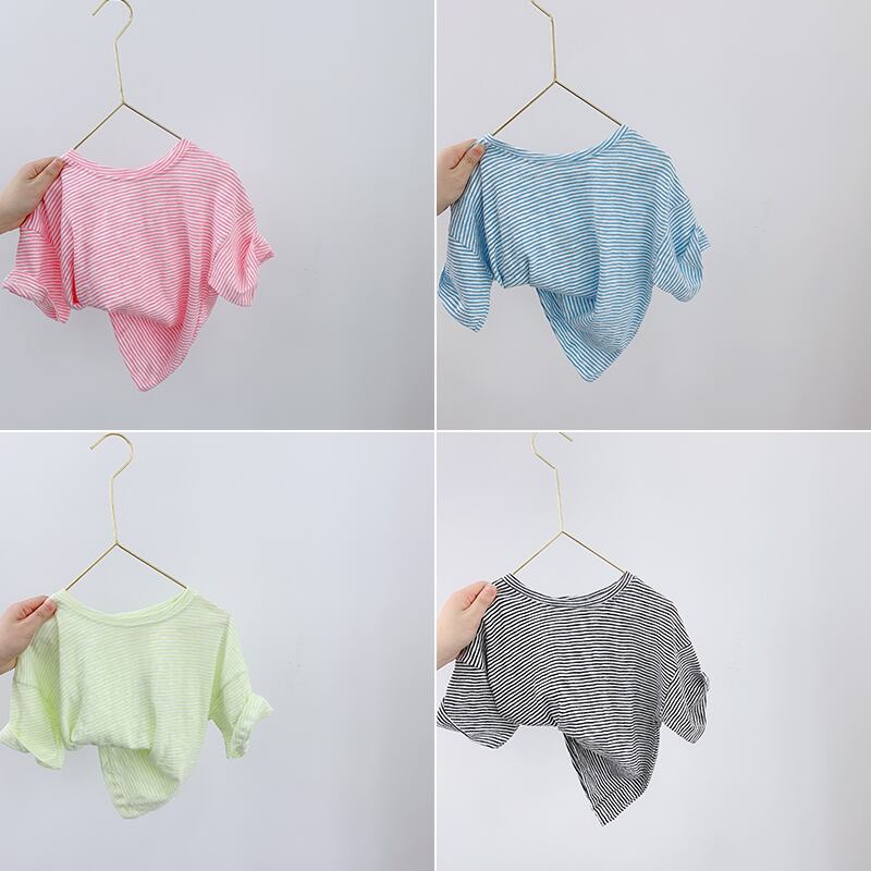 フィードバック]通気性のある綿のTシャツの男の子と女の子のキャンディーカラーストライプ半袖Tシャツ2020夏の子供 ショート コットン ハーフスリーブ サマー 夏物 SNSで話題 KIDS男の子 KIDS女の子 韓国ファッション 男の子ママ 女の子ママ 海外キッズファッション 親子コーデ 今日の服 プチプラ mi069633584