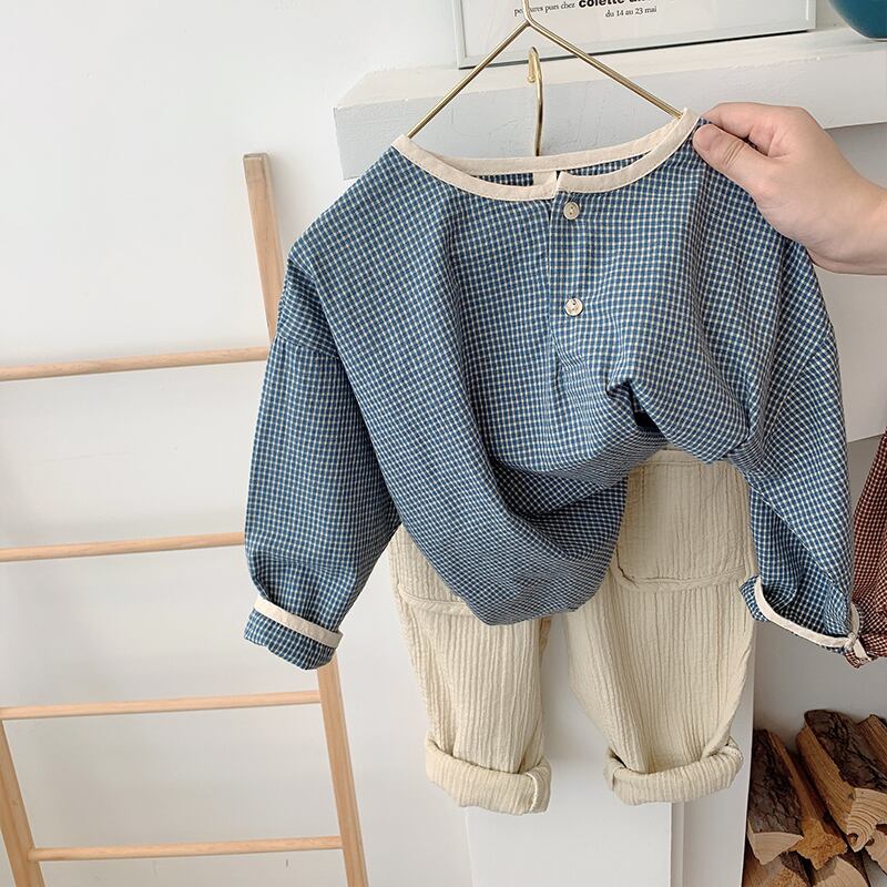 テクスチャード加工のレトロなカラーの子供用長袖Tシャツの男の子と2020年秋の新しい子供用のレトロなファッショナブルなTシャツ ロング レッド オータム 秋物 SNSで話題 KIDS男の子 KIDS女の子 韓国ファッション 男の子ママ 女の子ママ 海外キッズファッション 親子コーデ 今日の服 プチプラ mi064876837