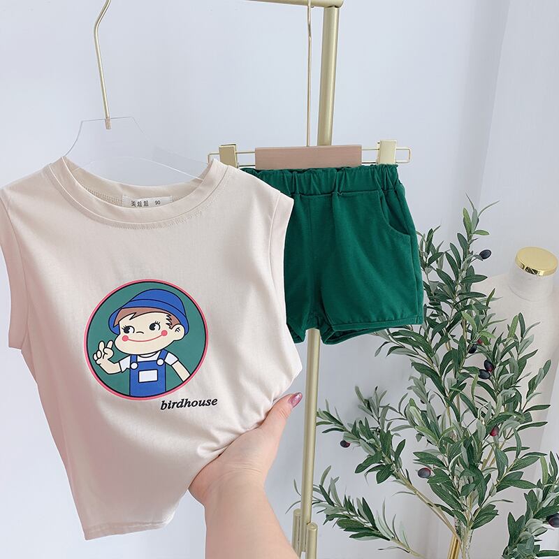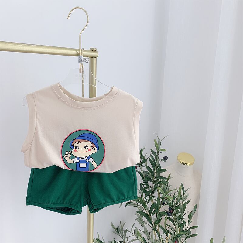 【セット】CHAOウエスタンスタイル男の子&ベスト夏服アウターコットン子供ノースリーブTシャツショートパンツツーピーススーツ サマー 夏物 ショーツ ブルマー SNSで話題 KIDS男の子 KIDS女の子 韓国ファッション 男の子ママ 女の子ママ 海外キッズファッション 親子コーデ 今日の服 プチプラ mi061919941