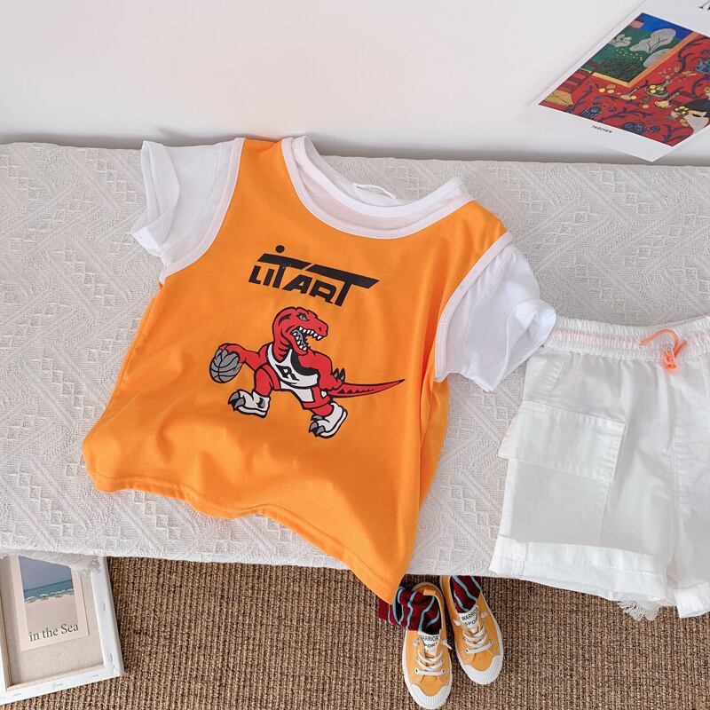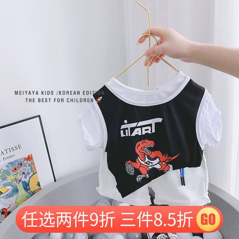 子供服2020夏男の子フェイクツーピースショートスリーブTシャツ子供用ハーフスリーブアンダーシャツ、ビッグボーイズトップス、トレンディボーイズ サマー 夏物 SNSで話題 KIDS男の子 KIDS女の子 韓国ファッション 男の子ママ 女の子ママ 海外キッズファッション 親子コーデ 今日の服 プチプラ mi065831833