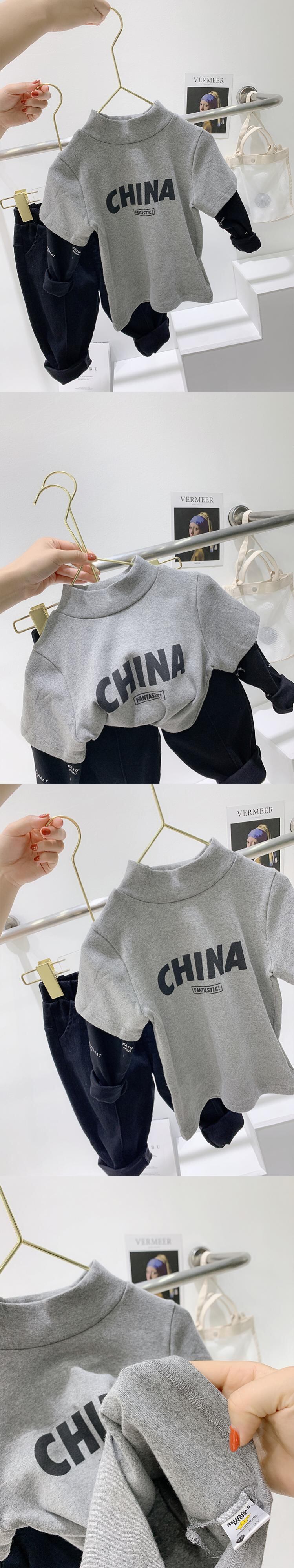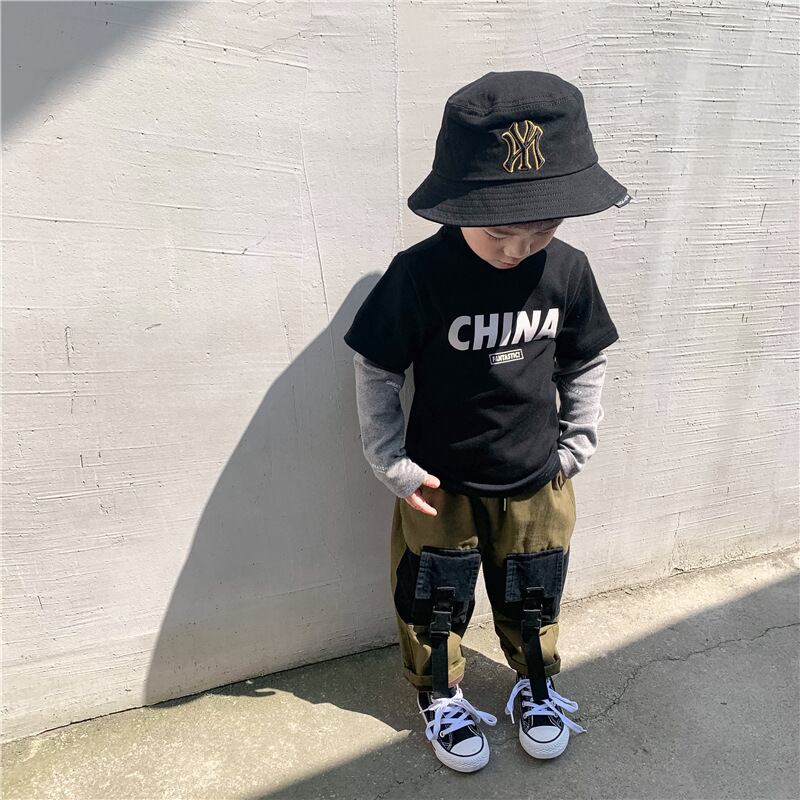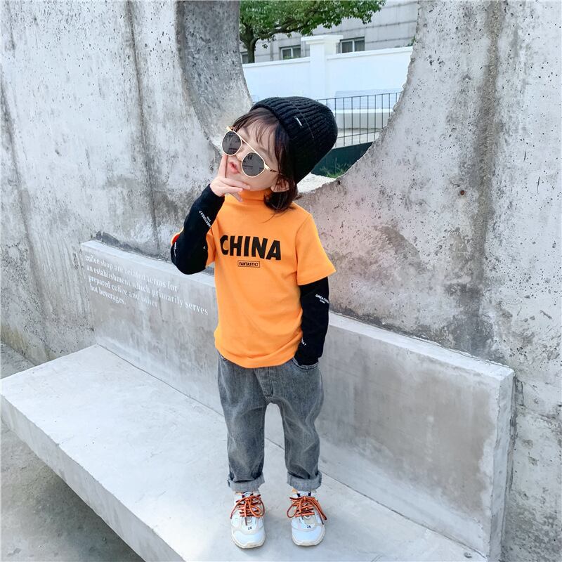 子供のハーフハイトカラーのボトムスシャツの男の子と純綿のフェイクツーピースエグインスタイルの長袖Tシャツエグインスタイルトップ ロング コットン ピュア SNSで話題 KIDS男の子 KIDS女の子 韓国ファッション 男の子ママ 女の子ママ 海外キッズファッション 親子コーデ 今日の服 プチプラ mi066864029117