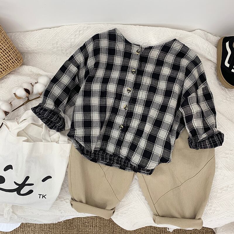 レトロダブルコート〜2020秋の子供たちの緩い格子縞のカーディガンショートトップの男の子と オータム 秋物 SNSで話題 KIDS男の子 KIDS女の子 韓国ファッション 男の子ママ 女の子ママ 海外キッズファッション 親子コーデ 今日の服 プチプラ mi0639384360207