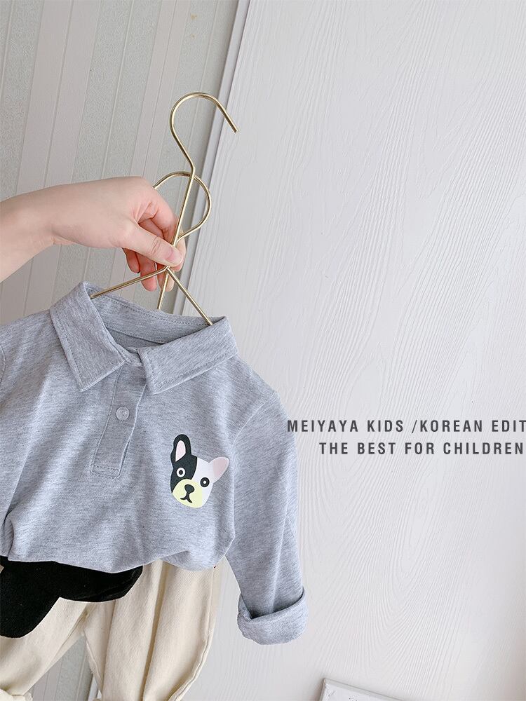 ベーシックスタイルソフトワックス2020秋の少年長袖ラペルポロシャツ、子供用Tシャツ、ミドルチャイルドトップ、ベビーベース ロング オータム 秋物 SNSで話題 KIDS男の子 KIDS女の子 韓国ファッション 男の子ママ 女の子ママ 海外キッズファッション 親子コーデ 今日の服 プチプラ mi0646501361934