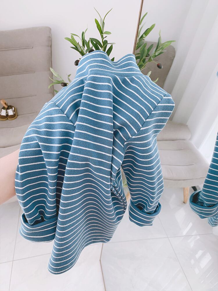 オーナーが予約した良い生地。男の子とハーフハイネックコットンストライプTシャツ2020秋と冬のオールマッチボトムスシャツ オータム 秋物 ウィンター 冬物 SNSで話題 KIDS男の子 KIDS女の子 韓国ファッション 男の子ママ 女の子ママ 海外キッズファッション 親子コーデ 今日の服 プチプラ mi0671209360759