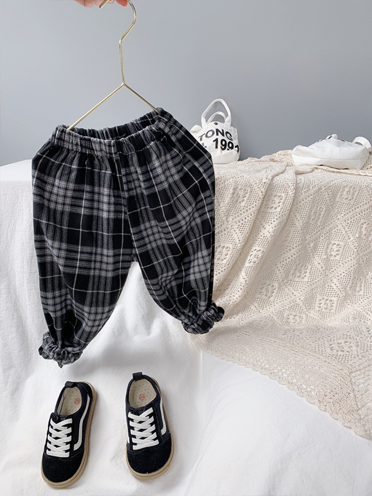 ウエスタンスタイルのレトロなチェック柄パンツ、子供服、男の子用パンツ、カジュアルパンツ、子供用ブルマのバージョン、ルーズで薄いスタイル ショーツ ブルマー SNSで話題 KIDS男の子 KIDS女の子 韓国ファッション 男の子ママ 女の子ママ 海外キッズファッション 親子コーデ 今日の服 プチプラ mi0612791943753