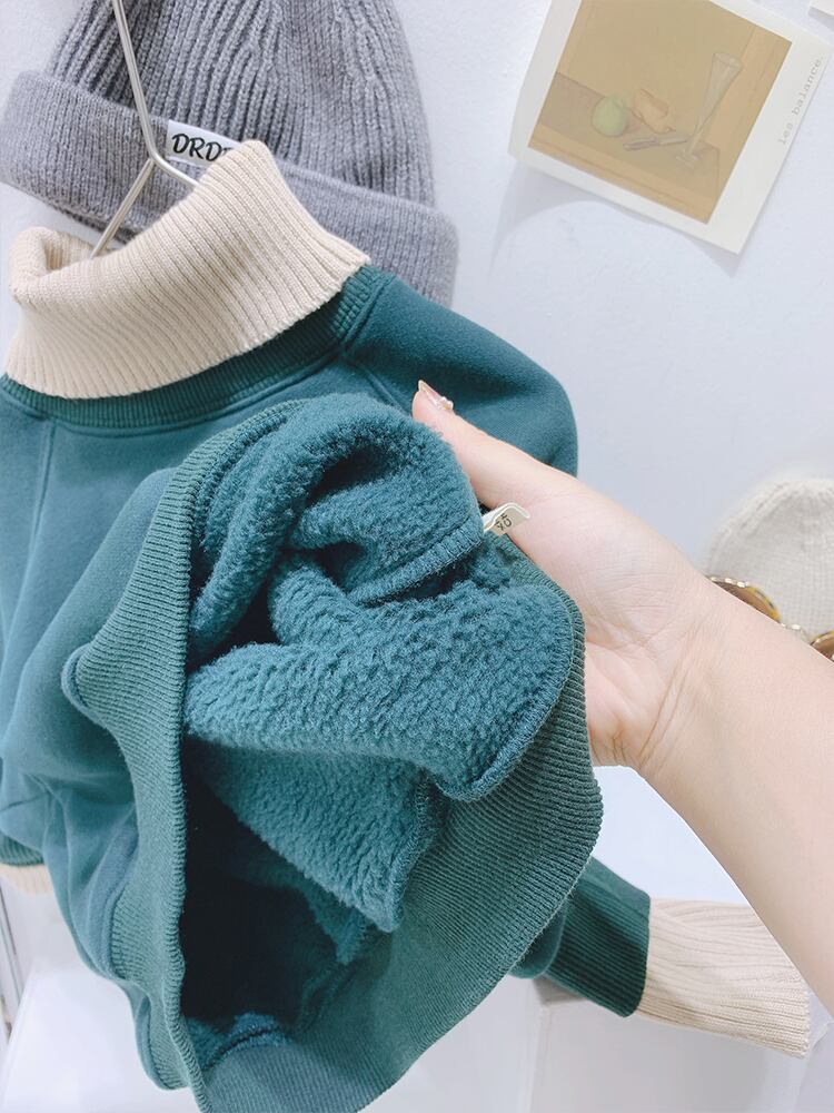 フェイクツーピースプラスフリースセーターボーイズとカジュアルルーズトップス子供用ハイネックウォームボトミングシャツ新品 SNSで話題 KIDS男の子 KIDS女の子 韓国ファッション 男の子ママ 女の子ママ 海外キッズファッション 親子コーデ 今日の服 プチプラ mi0662336070544