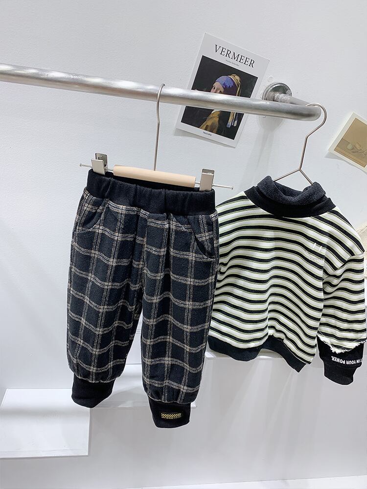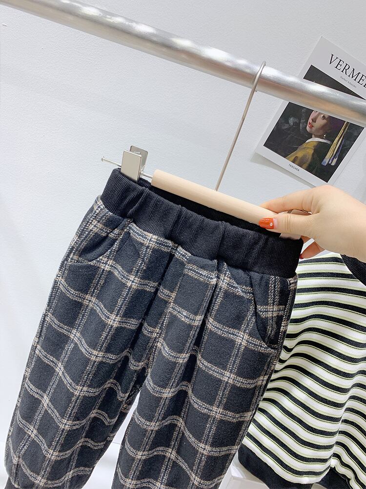 英国スタイルの子供たちの秋と冬の新しいスタイルに加えて、ベルベットのチェック柄のズボンの男の子と、ブルマを着たエインスタイルの厚手のパンツ オータム 秋物 ウィンター 冬物 ショーツ ブルマー SNSで話題 KIDS男の子 KIDS女の子 韓国ファッション 男の子ママ 女の子ママ 海外キッズファッション 親子コーデ 今日の服 プチプラ mi0695514580120