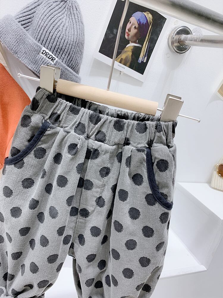 男の子とパンツのバージョン、ウエスタンスタイルのルーズブルマ、2020年秋冬の新しい子供用ウェーブポイント厚みのあるカジュアルパンツ オータム 秋物 ウィンター 冬物 ショーツ ブルマー SNSで話題 KIDS男の子 KIDS女の子 韓国ファッション 男の子ママ 女の子ママ 海外キッズファッション 親子コーデ 今日の服 プチプラ mi0667308903284