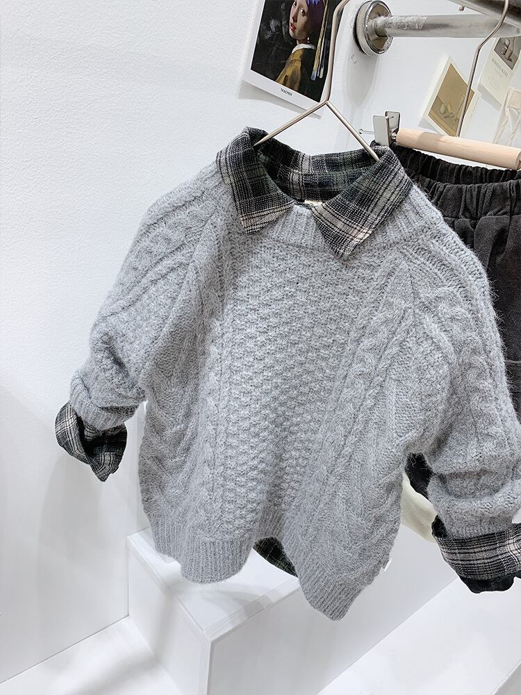 スーパーウエスタンスタイルのヘンプパターン太いスティックニットセーター子供用ラウンドネックボトミング服冬の男の子とウールプルオーバー厚手のコート ウィンター 冬物 Oネック SNSで話題 KIDS男の子 KIDS女の子 韓国ファッション 男の子ママ 女の子ママ 海外キッズファッション 親子コーデ 今日の服 プチプラ mi0629524754144