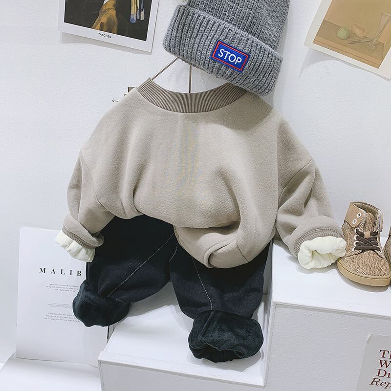 ハンファンがいっぱい〜ボーイズセーター2020冬新ラウンドネックプラスベルベットボトミングシャツ子供用パッド入りトップス ウィンター 冬物 Oネック SNSで話題 KIDS男の子 KIDS女の子 韓国ファッション 男の子ママ 女の子ママ 海外キッズファッション 親子コーデ 今日の服 プチプラ mi0664193728281