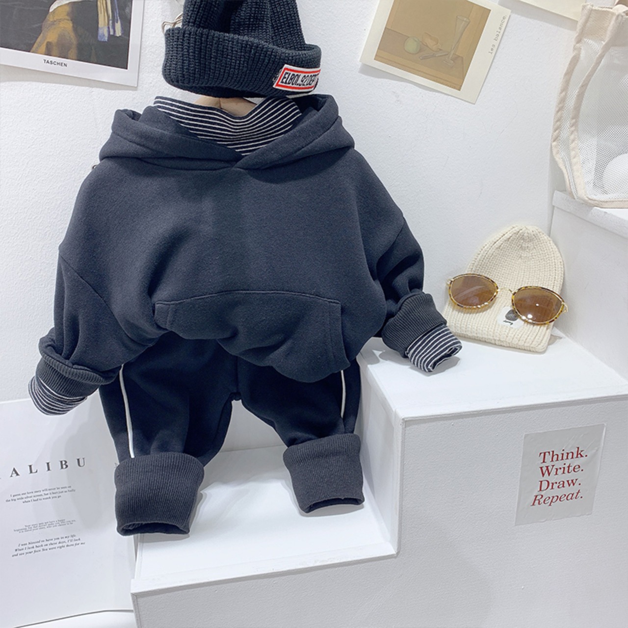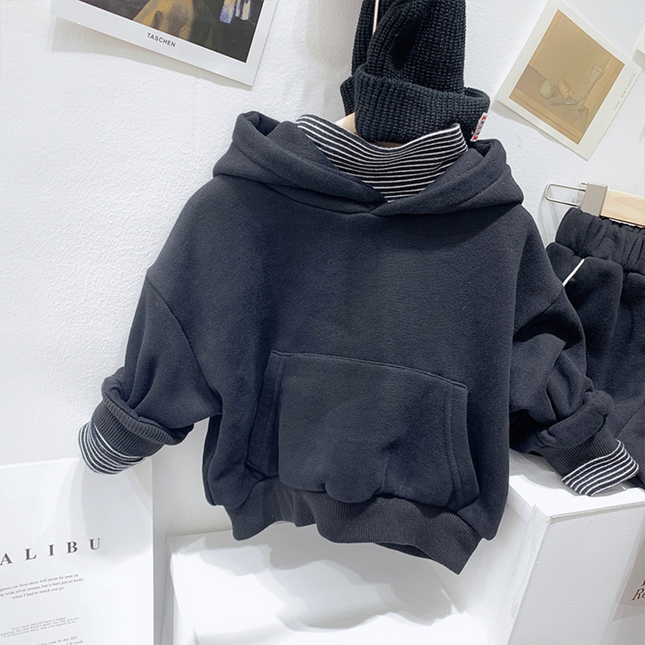 シンプルなスタイルの子供用フード付きフェイクツーピースセーター2020新しい男の子とベルベットスタイルのウエスタンスタイルのジャケット秋冬 オータム 秋物 ウィンター 冬物 SNSで話題 KIDS男の子 KIDS女の子 韓国ファッション 男の子ママ 女の子ママ 海外キッズファッション 親子コーデ 今日の服 プチプラ mi0642949694333