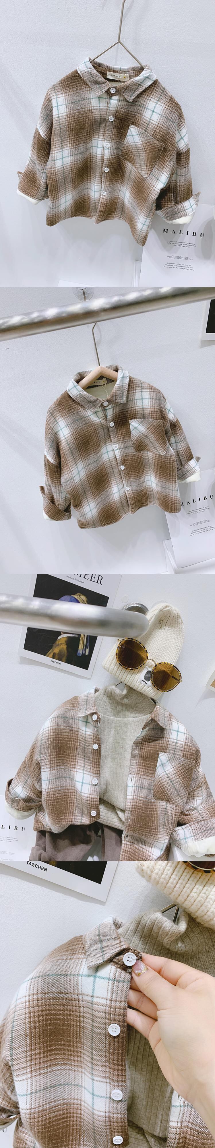 eseアクセントソフトワックスラペルシャツ子供プラスベルベットチェック柄シャツ男の子厚いトップボトミングシャツ潮 SNSで話題 KIDS男の子 KIDS女の子 韓国ファッション 男の子ママ 女の子ママ 海外キッズファッション 親子コーデ 今日の服 プチプラ mi0687411222100