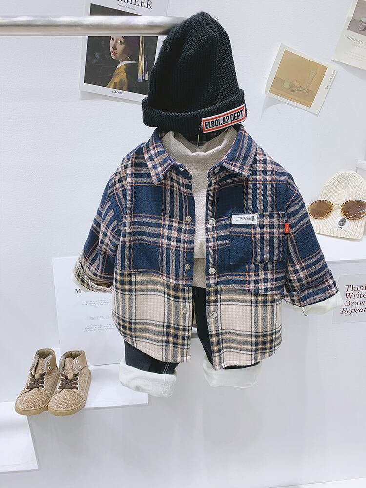 良い品質が入力する必要があります。ボーイズシャツとベルベットの2020年冬の子供用長袖シャツ、暖かいジャケット、子供用ジャケット ロング ウィンター 冬物 SNSで話題 KIDS男の子 KIDS女の子 韓国ファッション 男の子ママ 女の子ママ 海外キッズファッション 親子コーデ 今日の服 プチプラ mi0647250352614