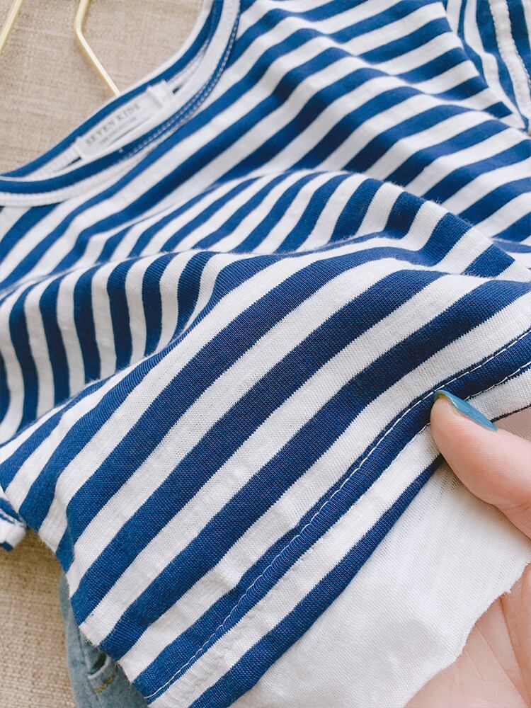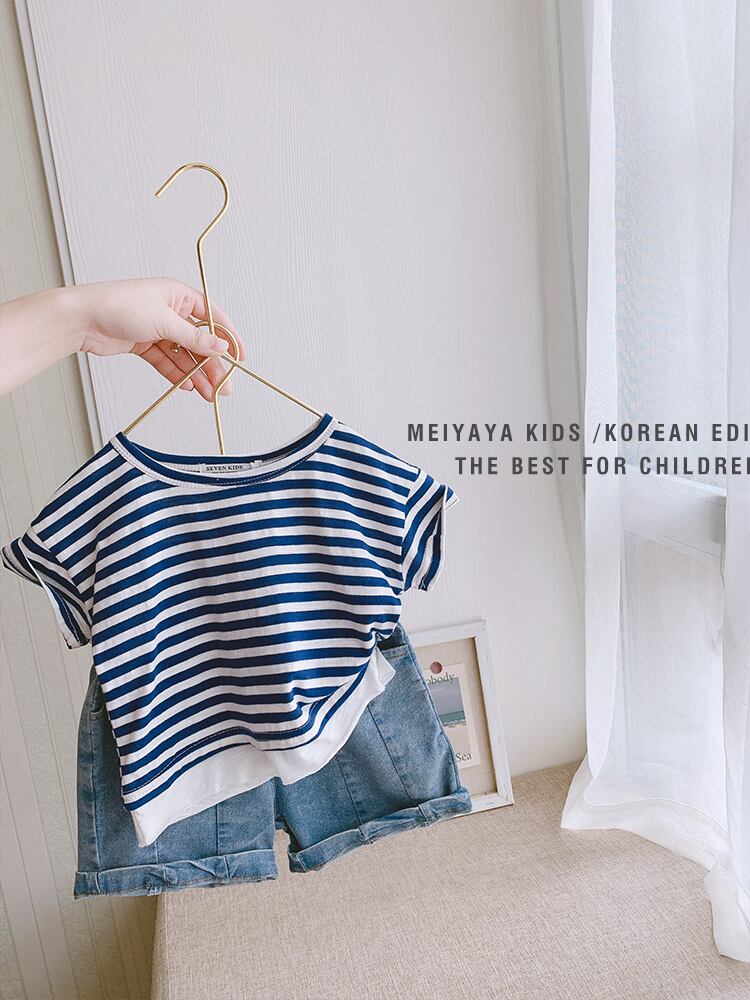 子供服の男の子とステッチ半袖Tシャツ2020夏の子供用ストライプルーズでフレッシュなラウンドネックトップアンダーシャツ サマー 夏物 Oネック SNSで話題 KIDS男の子 KIDS女の子 韓国ファッション 男の子ママ 女の子ママ 海外キッズファッション 親子コーデ 今日の服 プチプラ mi066064776