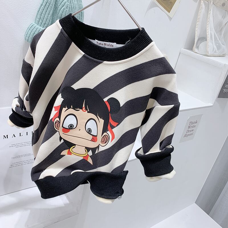 ネットセレブの子供たちに加えて、ベルベットのセーターのプルオーバーの男の子とストライプの厚いボトミングシャツウエスタンスタイルの冬服のトップス ウィンター 冬物 SNSで話題 KIDS男の子 KIDS女の子 韓国ファッション 男の子ママ 女の子ママ 海外キッズファッション 親子コーデ 今日の服 プチプラ mi0640572038121