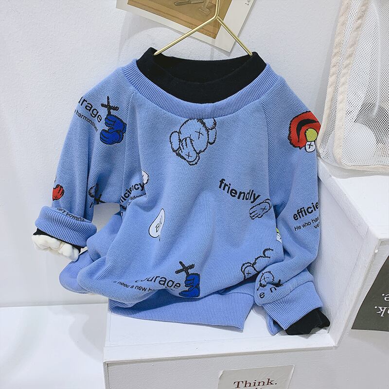 子供用ボトミングシャツ2020ジャケット付きの新しい秋冬服、男の子のエインスタイル、子供と子供、ベルベットのパッド入りプルオーバー オータム 秋物 ウィンター 冬物 SNSで話題 KIDS男の子 KIDS女の子 韓国ファッション 男の子ママ 女の子ママ 海外キッズファッション 親子コーデ 今日の服 プチプラ mi0667311559097