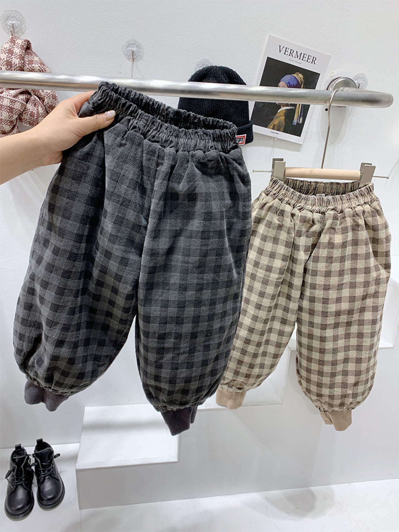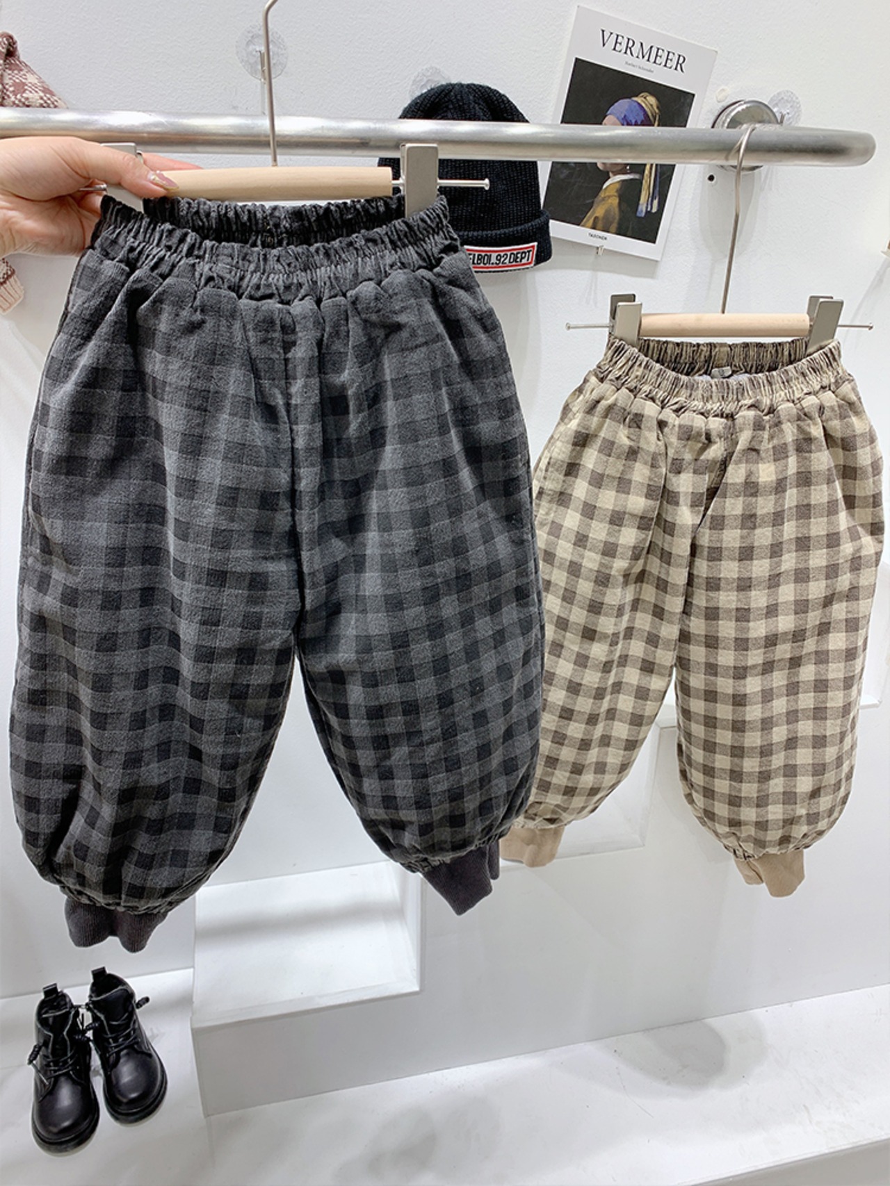 冬の綿のズボンの子供用キルティングチェック柄シルクカチオンカジュアルパンツ冬の男の子と厚いパンツのペア コットン ウィンター 冬物 mi0647739913309
