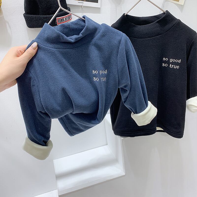 メイヤヤ子供用ハイネックボトミングシャツコットン2020秋冬服男の子プラスベルベットTシャツパッド入りトップス オータム 秋物 ウィンター 冬物 mi0696042270833