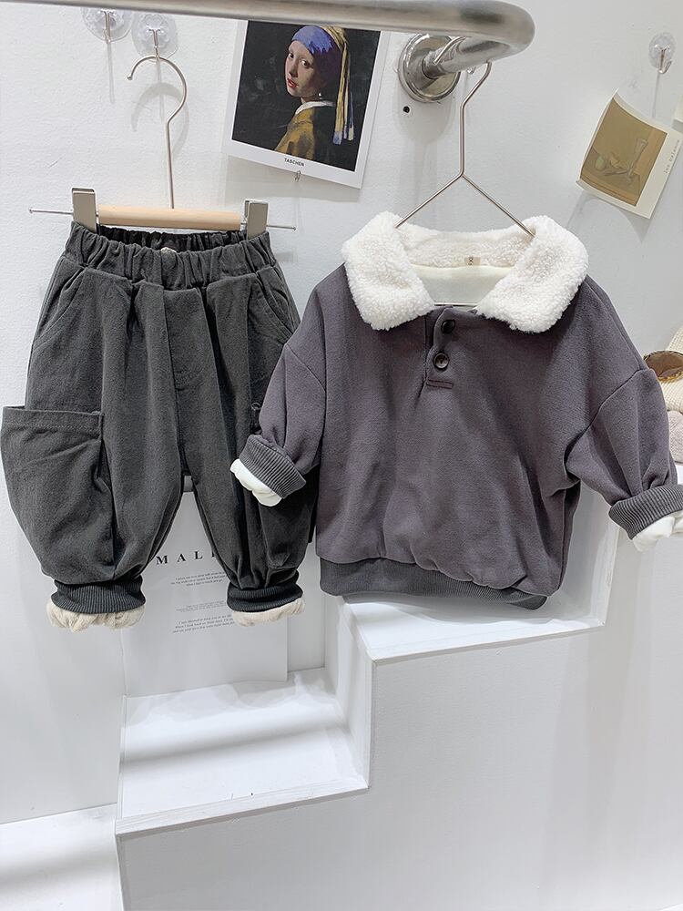 メイヤヤ厚くて暖かい2020年冬服男の子とプラスフリースセータージャケットトップス潮ポロボトミングシャツ潮 ウィンター 冬物 mi0622277513139