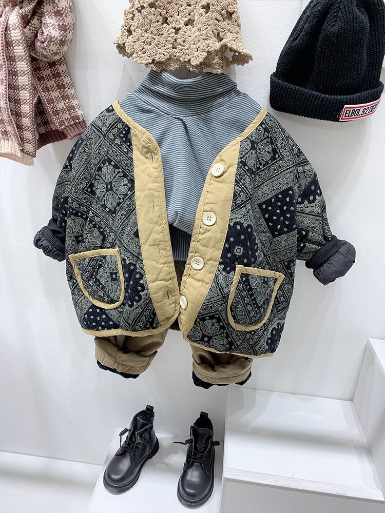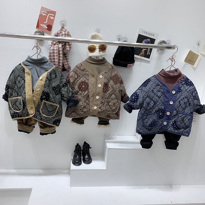 トレンディな子供用レトロキルティングパッド入りジャケットボーイズと2020ウエスタンスタイルの秋冬服キルティング薄パッド入りジャケットジャケットトレンド オータム 秋物 ウィンター 冬物 mi061281268441