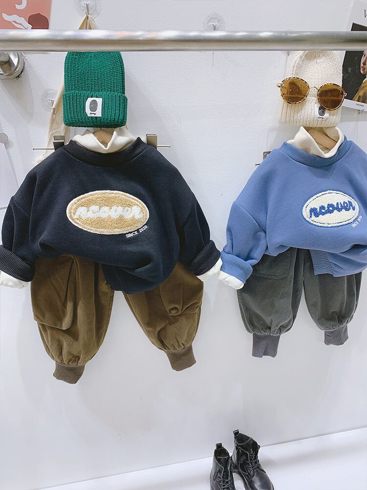ソフトワックスのトレンディな子供用セーターとベルベット2020の新しい秋冬のウエスタンスタイルの男の子とボトミングシャツの厚いトップ オータム 秋物 ウィンター 冬物 mi0678736120670