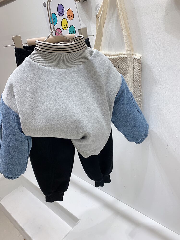 オールマッチで快適なキルティングの子供用ステッチスリーブセーターボーイズエインスタイルの厚みのあるボトミングシャツトップス子供用の新しい冬 ウィンター 冬物 mi0620867716258