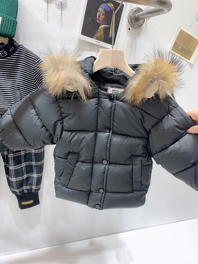 サウスボーイズとウィンタージャケット厚手のコットンパッド入りジャケット新しい子供用ミドル丈コットンパッド入りジャケット本物のファーカラーダウンパッド入りジャケット 冬物 mi0628871372441
