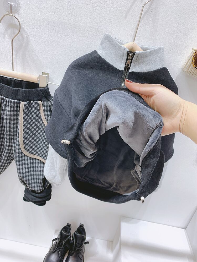 トーンのフェイクツーピースセーターボーイズプラスベルベットステッチトップス2020新しい子供用秋冬服厚手の暖かい服 オータム 秋物 ウィンター 冬物 mi0630471034158