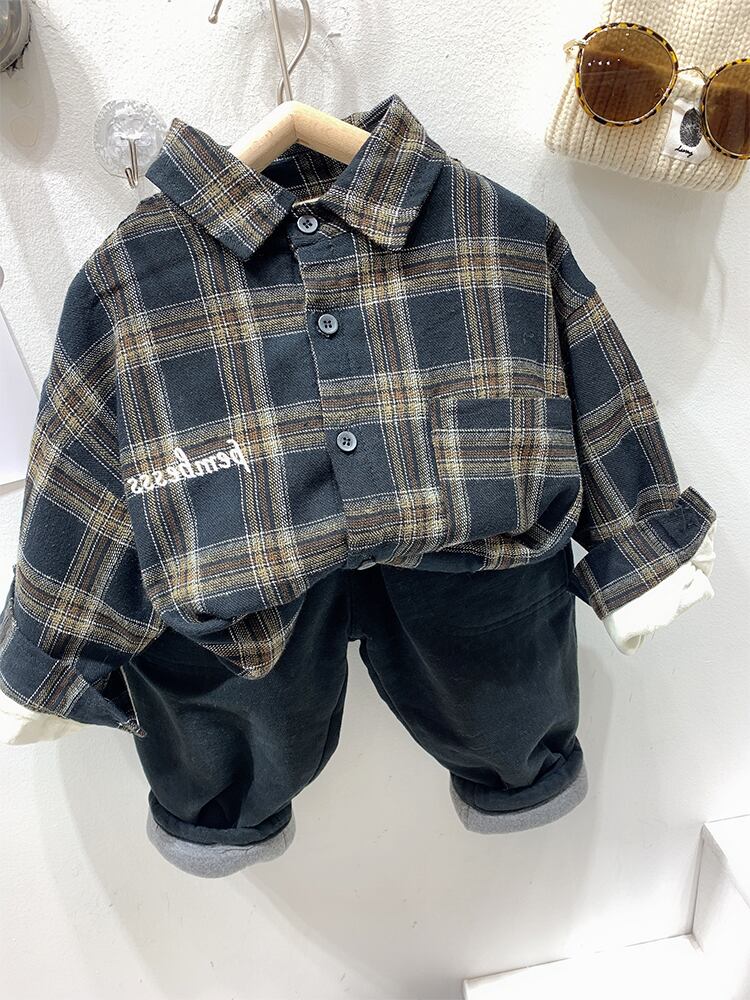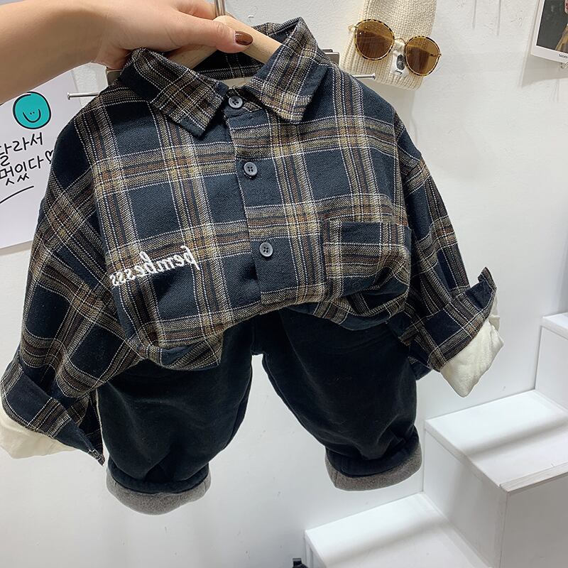 レトロセン子供服子供プラスベルベットチェック柄シャツ2020冬服ニューボーイズウエスタンスタイルインナーシャツ ウィンター 冬物 mi0641729619996