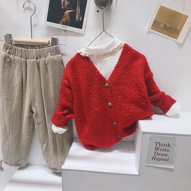 超良いバージョン!子供用Vネックニットカーディガンジャケット2020ニューボーイズと厚手のセーターニットセーター mi0656045423736