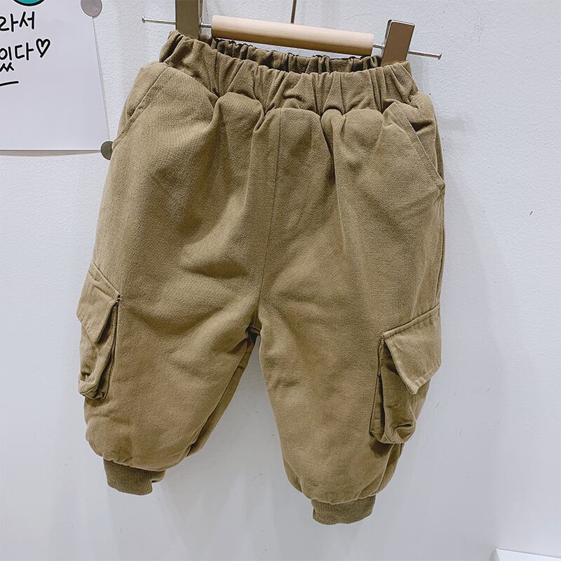 冬の子供用シルクコットンパンツの男の子は、カーキウエスタンスタイルのツーリングパッド入りパンツを3層の超厚手で着用します ウィンター 冬物 mi0639799910622