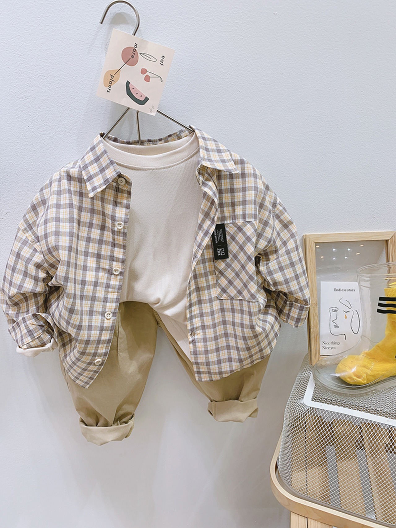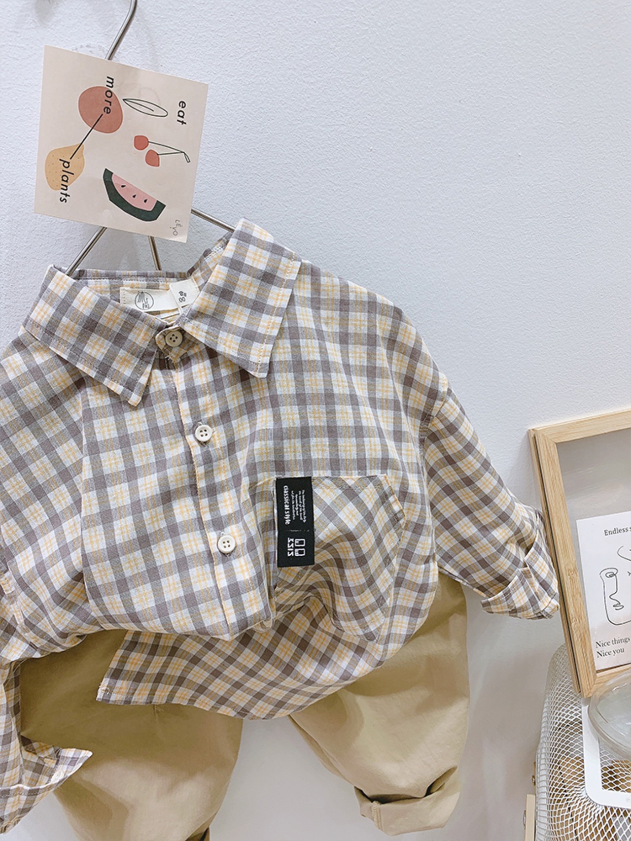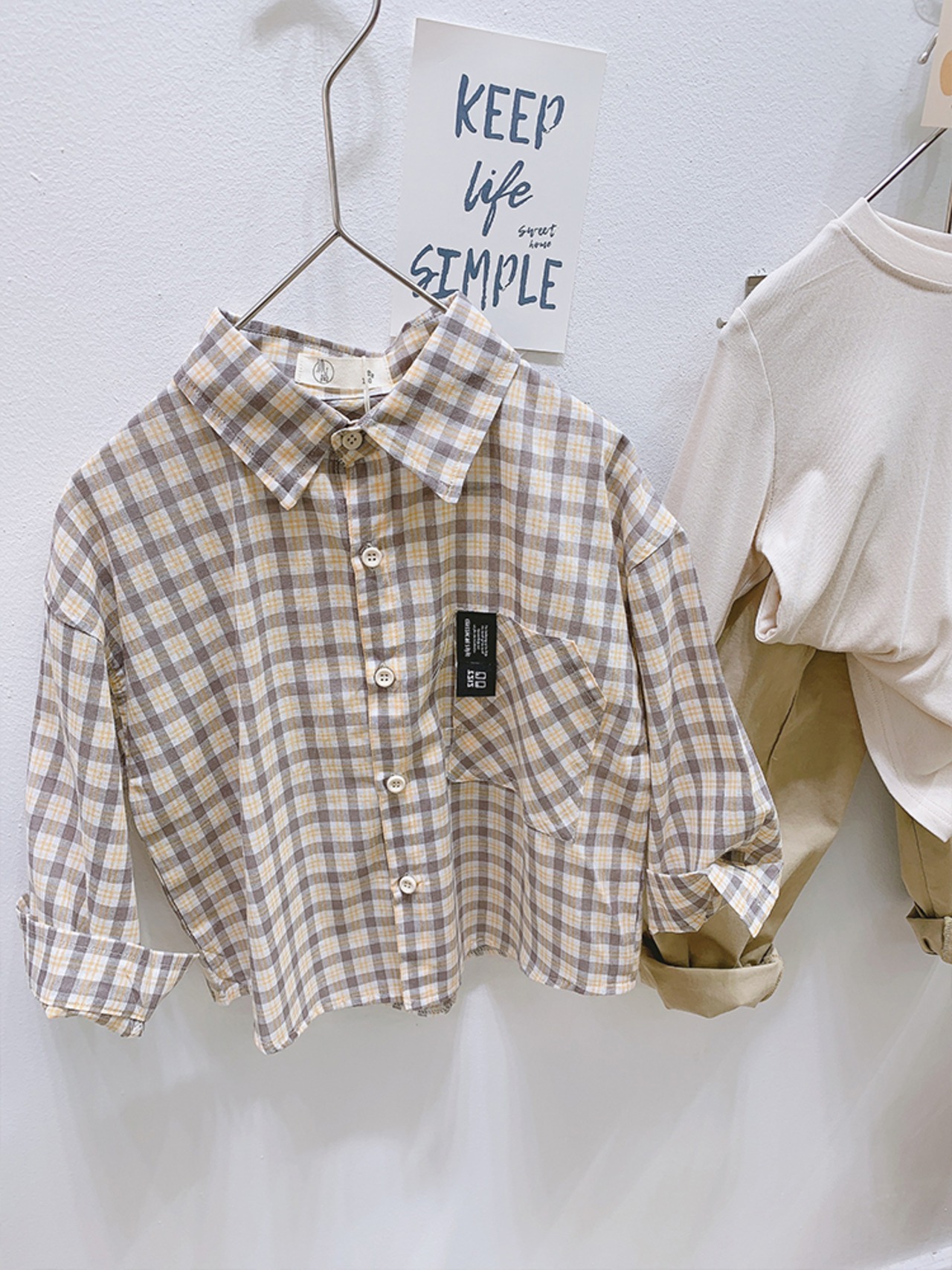 高級感ボーイズシャツコットンボーイズチェック柄トップスキッズシャツウエスタンスタイル薄手のジャケット2021春 スプリング 春物 mi0637277537884