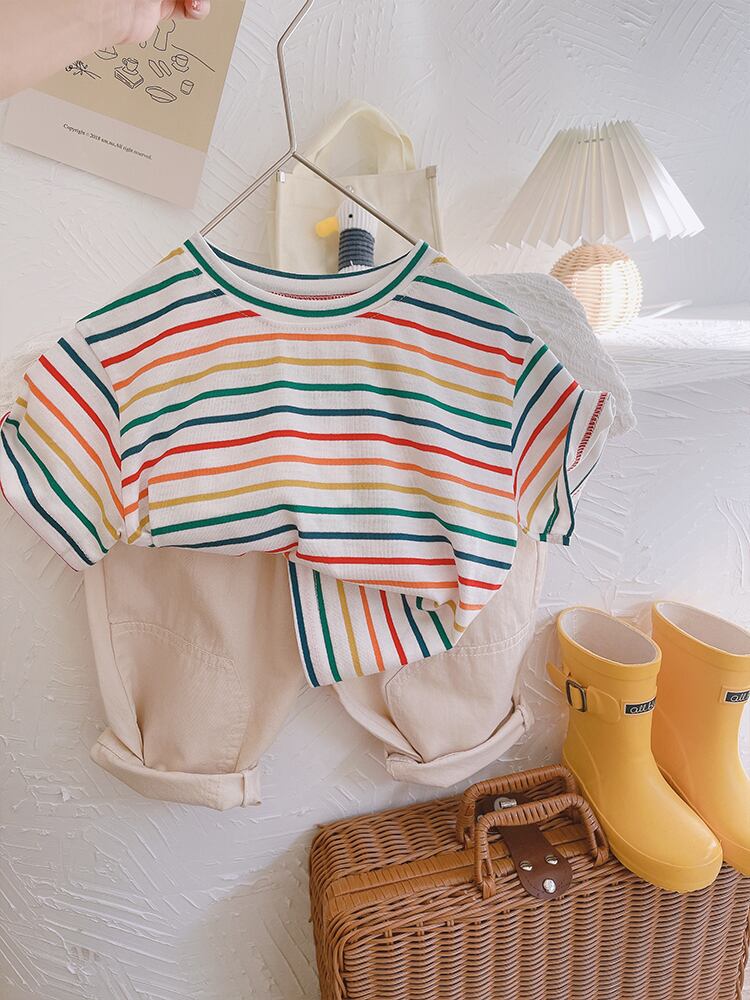 ストライプスタイル薄手トップス カジュアルTシャツ mi0670518781842
